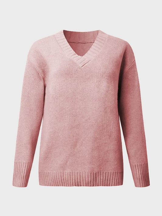 V-Neck Ribbed Long Sleeve Knit Top