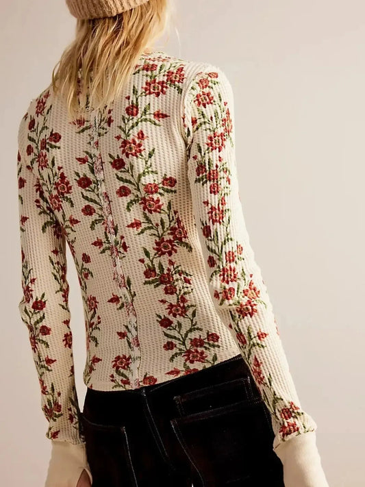 Floral Print Waffle Knit Top