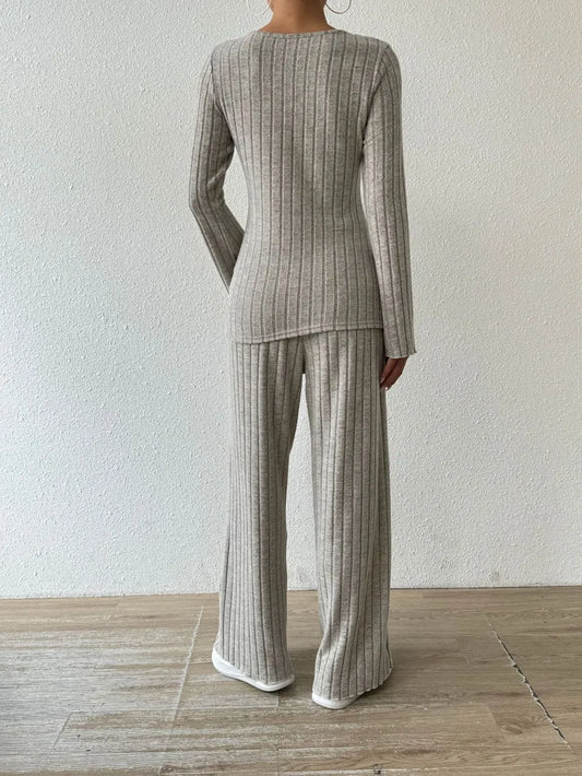 Contrast Trim Round Neck Top and Pants Sweater Set